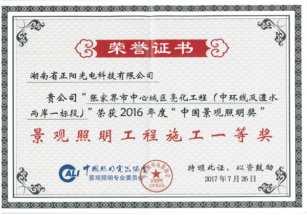 湖南省正陽光電科技有限公司是一家從事亮化工程及大型燈光藝術的設計、制作、安裝和維護于一體的專業化公司。公司資質齊全、管理嚴謹、技術先進、實力雄厚,取得了城市及道路照明工程專業承包壹級資質、照明工程設計專項甲級資質、機電工程施工總承包貳級資質、施工勞務等資質、國家高新技術企業、國家“重質量·守誠信”示范企業。